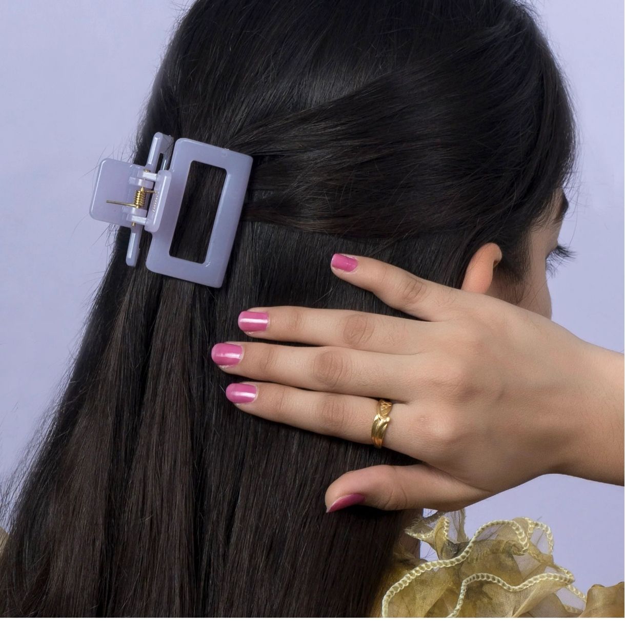 Add a soft pop of colour to your hairstyle with this lavender pastel claw clip. Its minimal square design and glossy finish make it perfect for everyday styling while keeping your hair secure and comfortable all day.