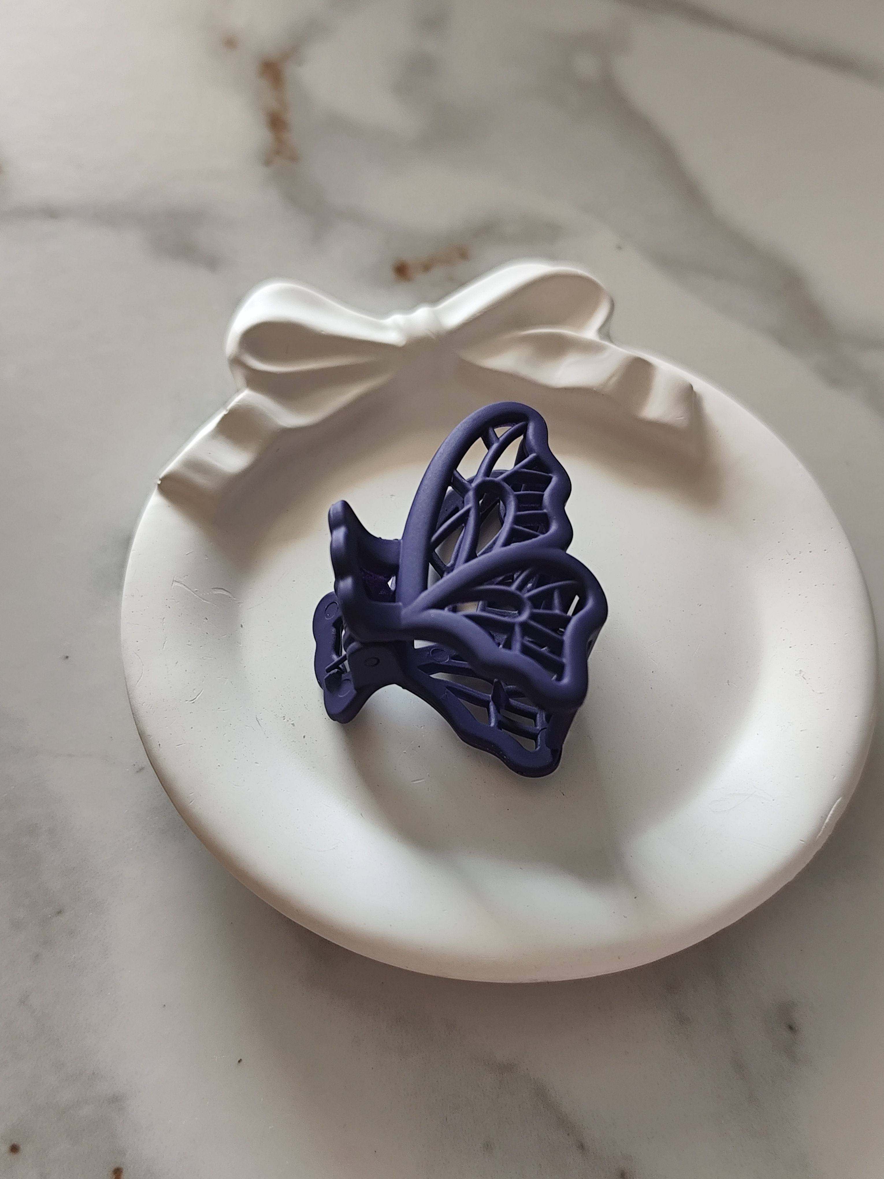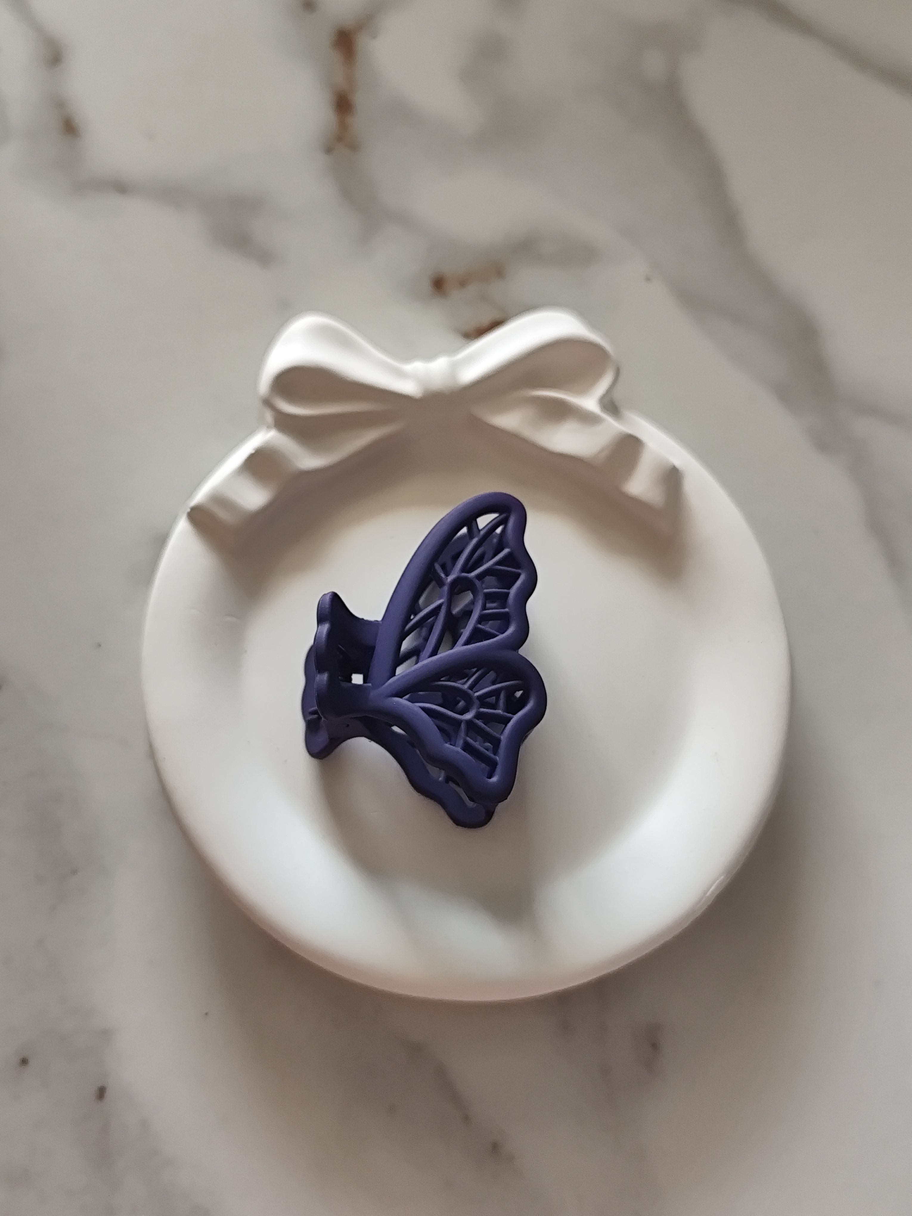 Stylish purple butterfly claw clip with a smooth matte finish. The small size makes it comfortable to wear and easy to style, adding a pop of colour to your everyday look.