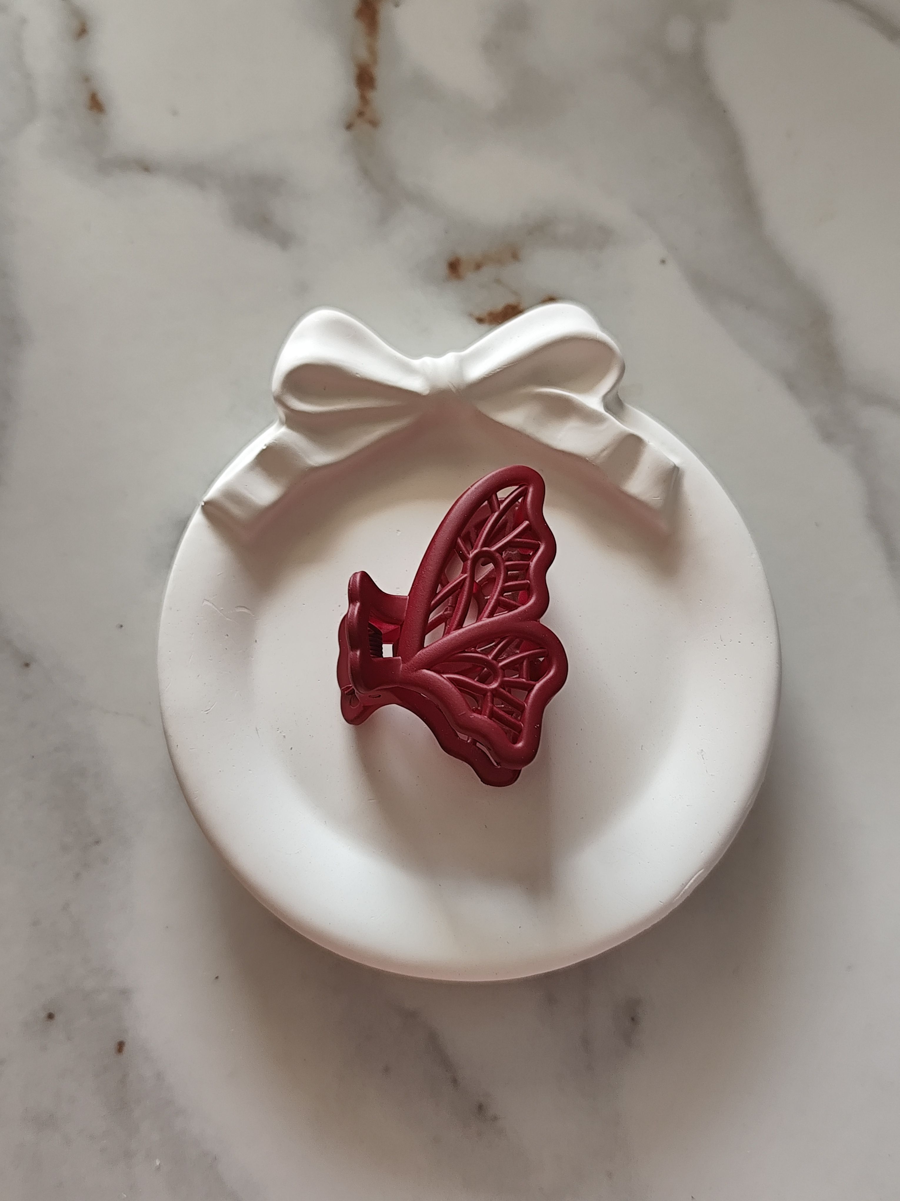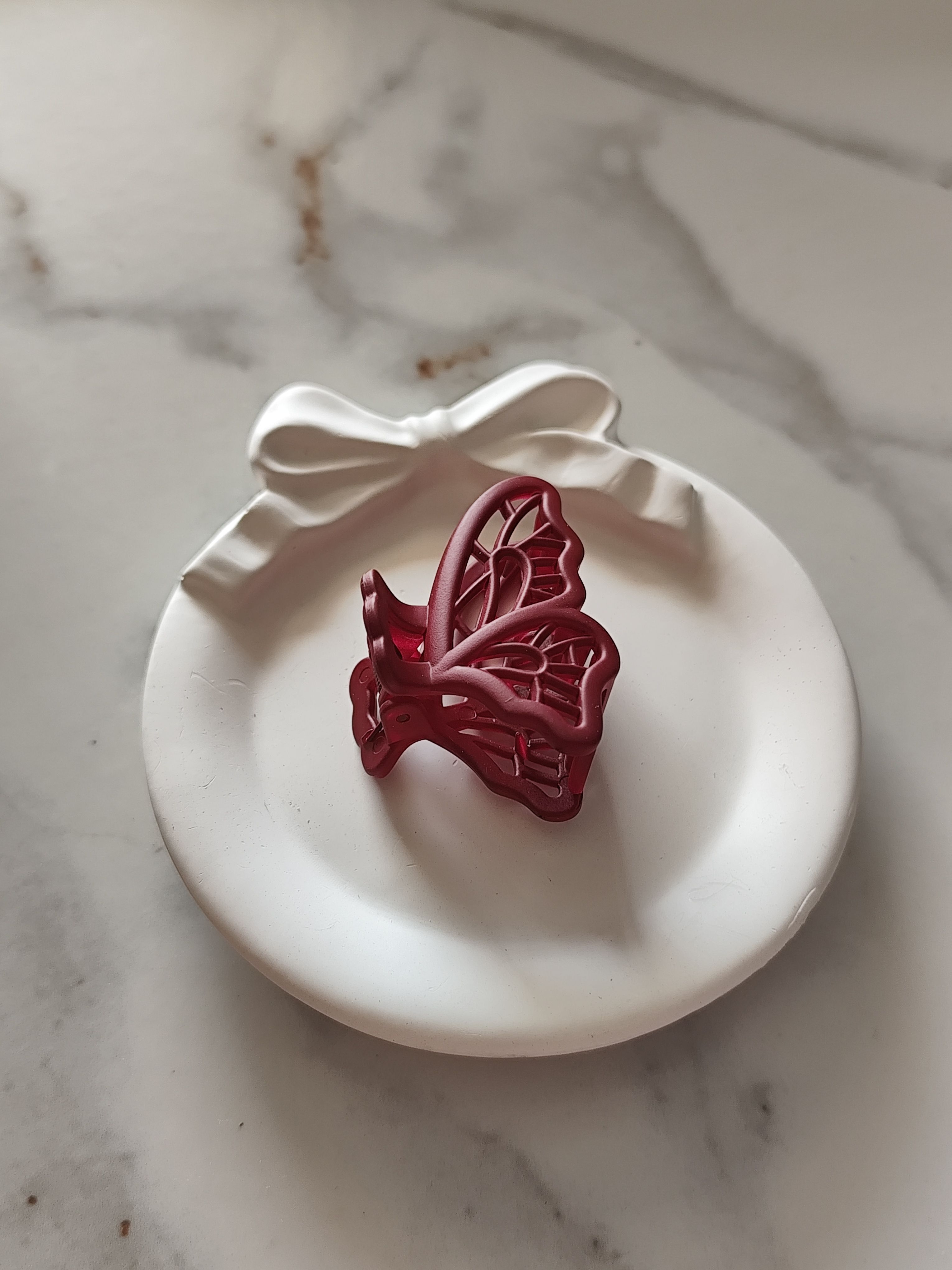 Stylish Cherry Red butterfly claw clip with a smooth matte finish. The small size makes it comfortable to wear and easy to style, adding a pop of colour to your everyday look.