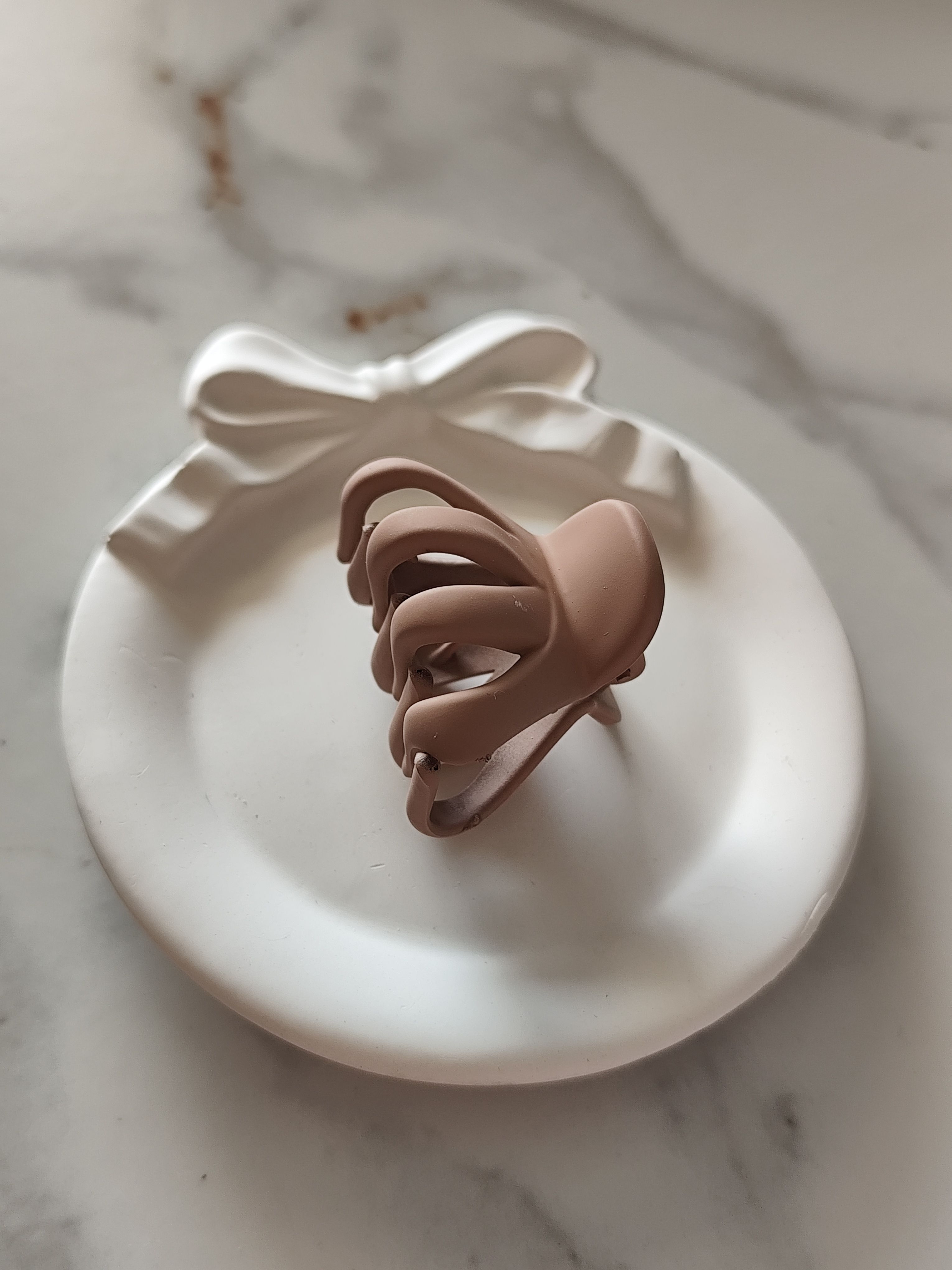 This beige matte claw clip is a versatile piece for everyday hair styling.