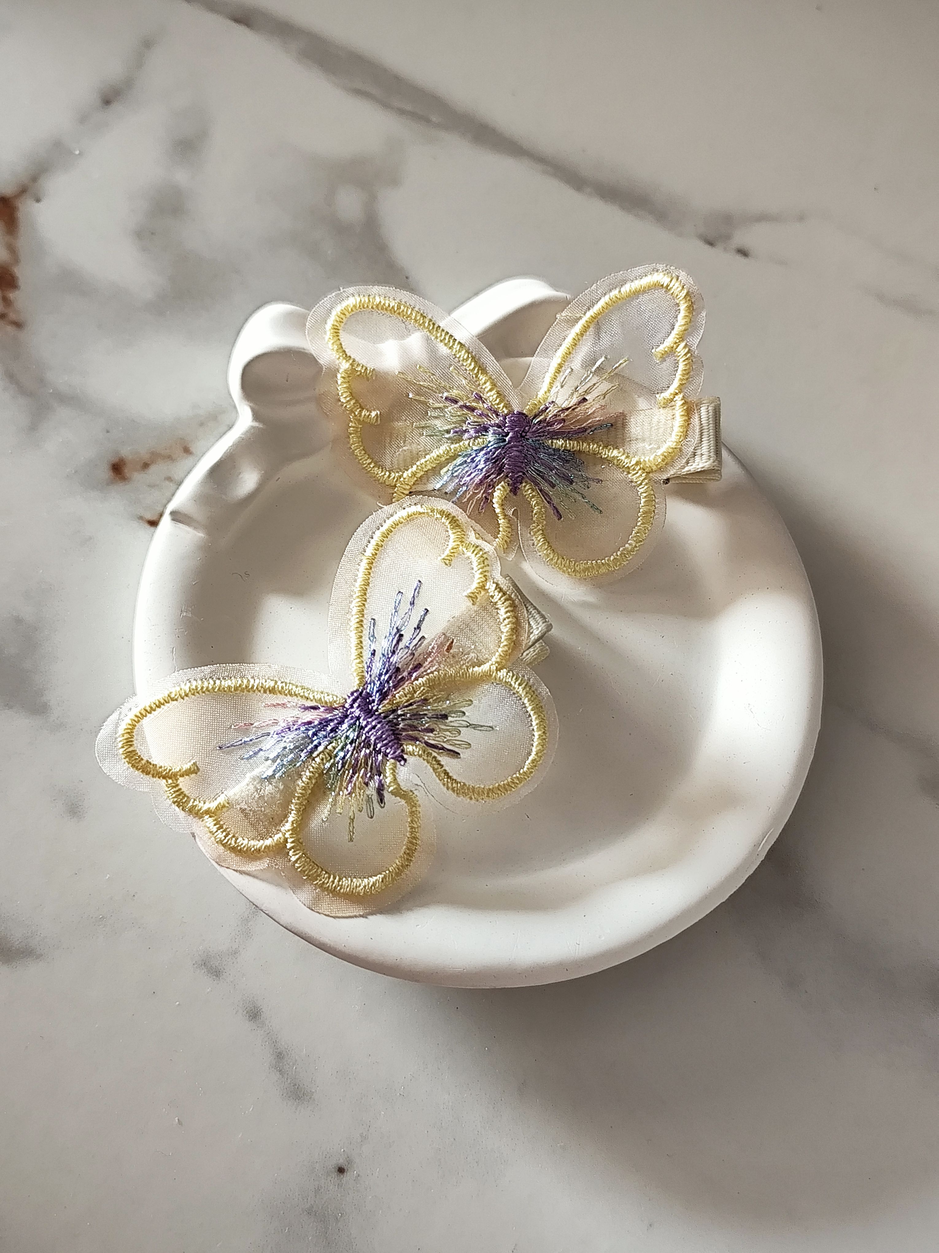 Butter Yellow Embroidered Butterfly Hair Pins (Pack of 2)