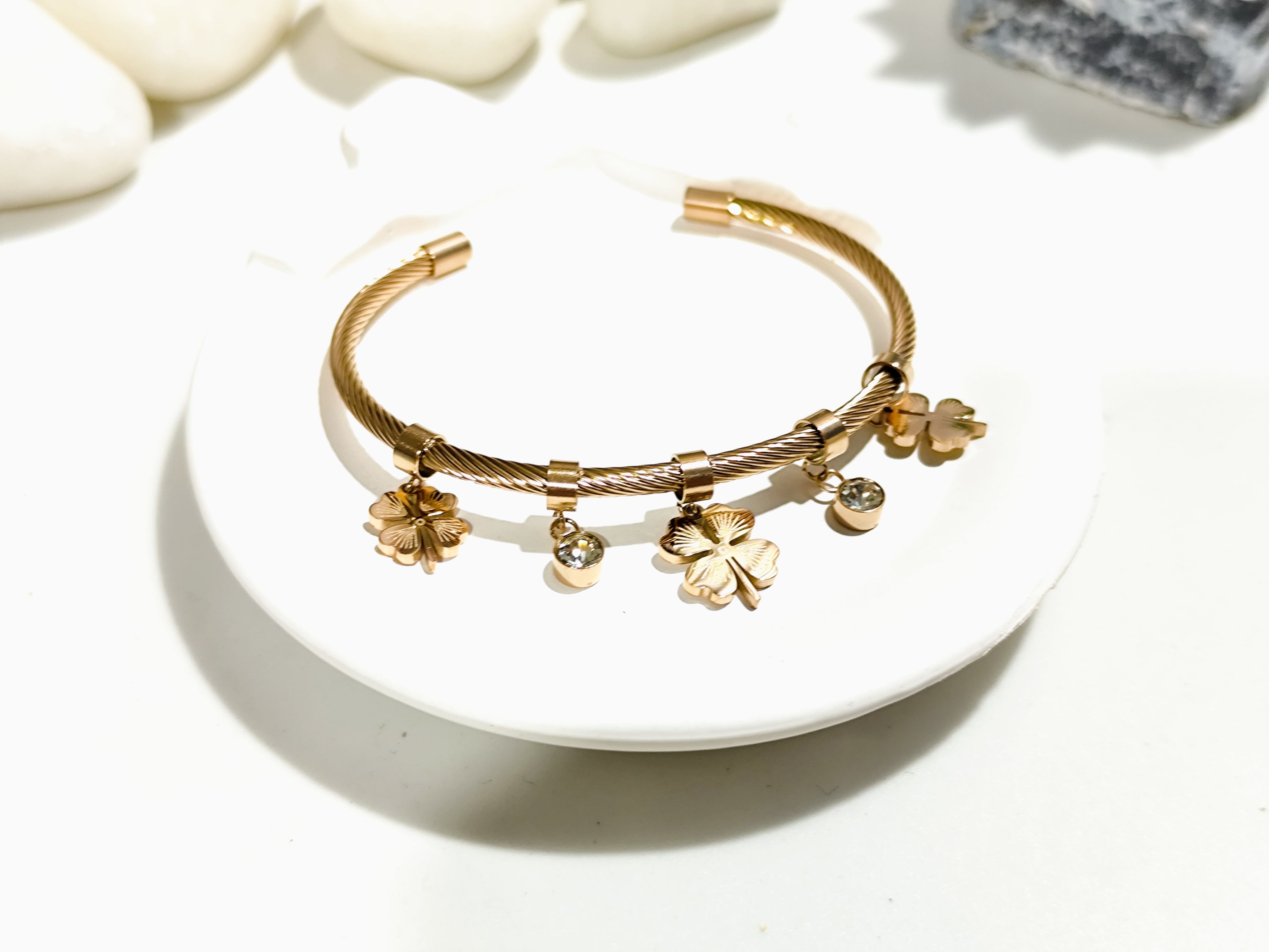 Design: Clover charm with crystal accents