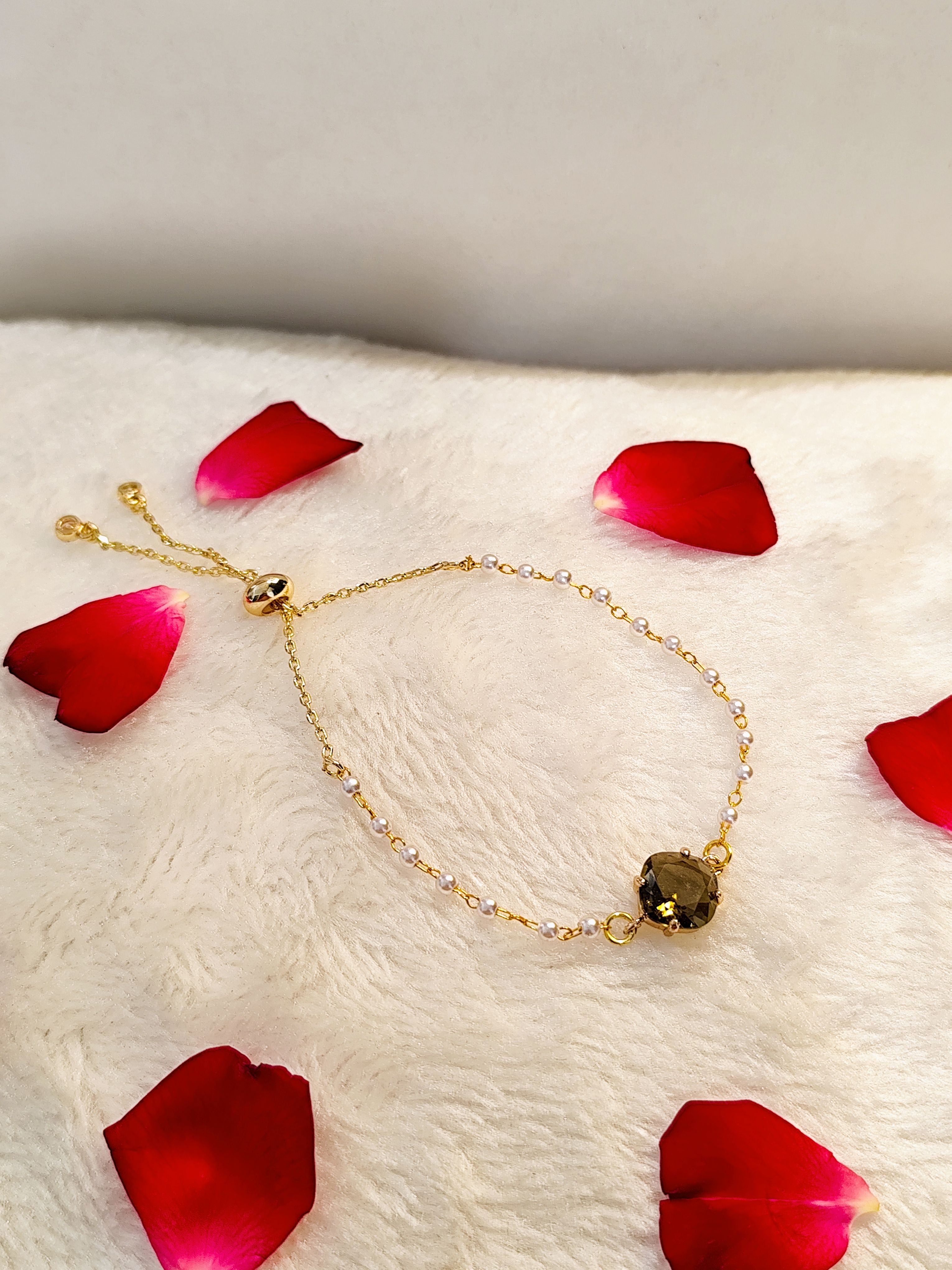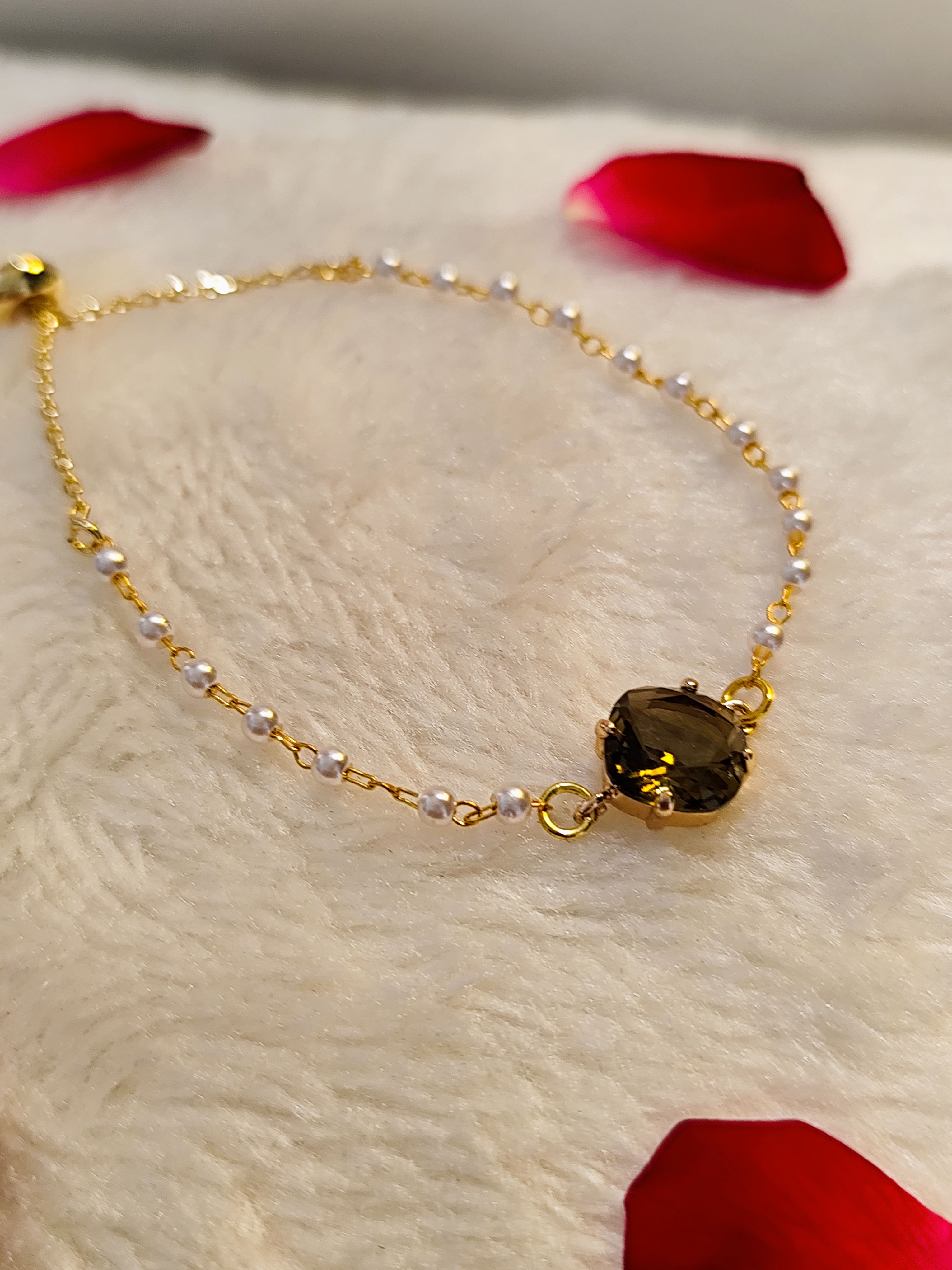 Timeless elegance meets subtle sparkle in the Olive Pearl Charm Bracelet. Designed with a delicate gold-tone chain, tiny pearl accents, and a beautiful olive-toned statement stone, this bracelet adds a refined charm to your wrist. Lightweight yet eye-catching, it’s perfect for those who love minimal jewellery with a hint of luxury. Ideal for everyday wear, special occasions, or thoughtful gifting.