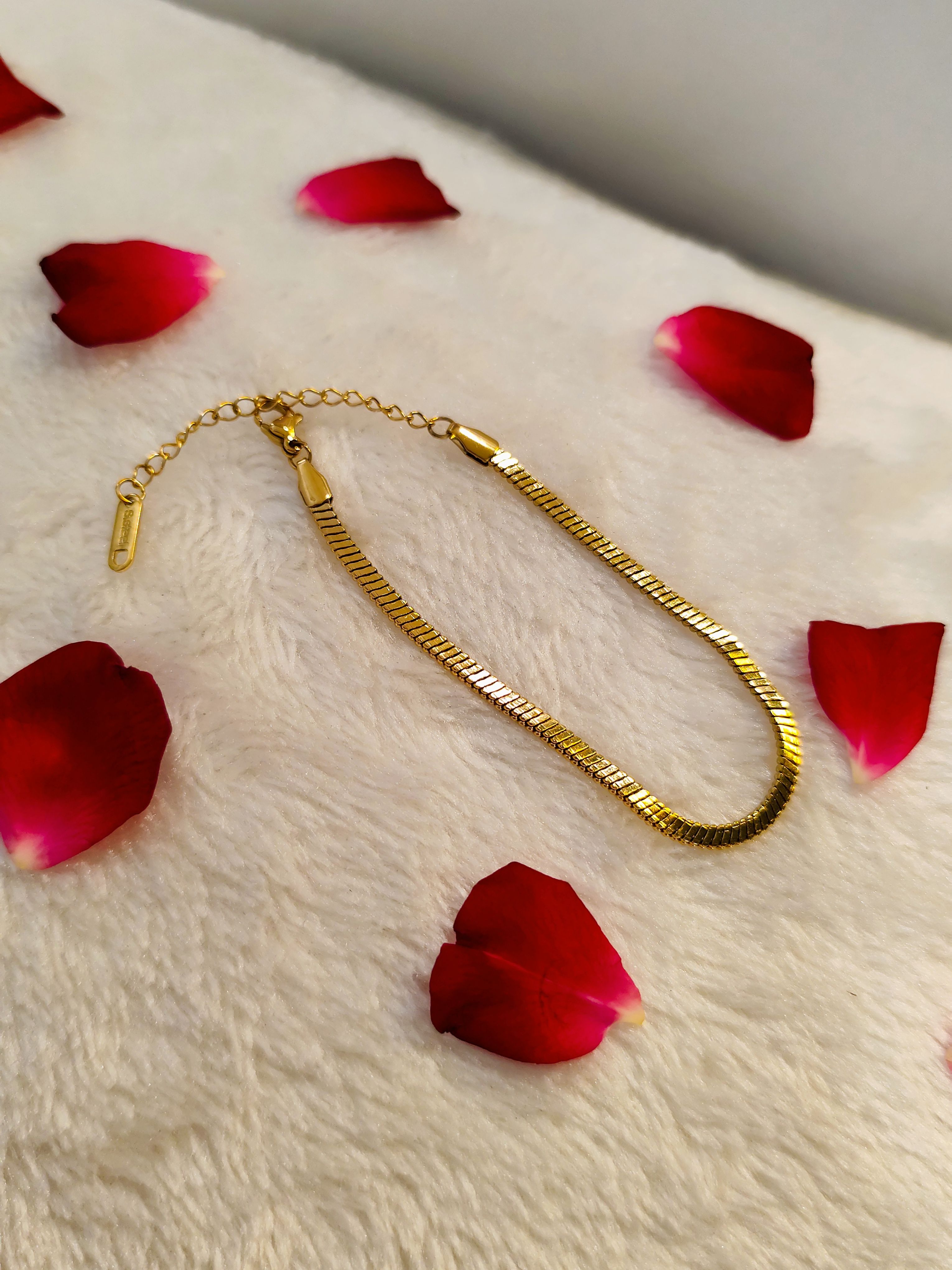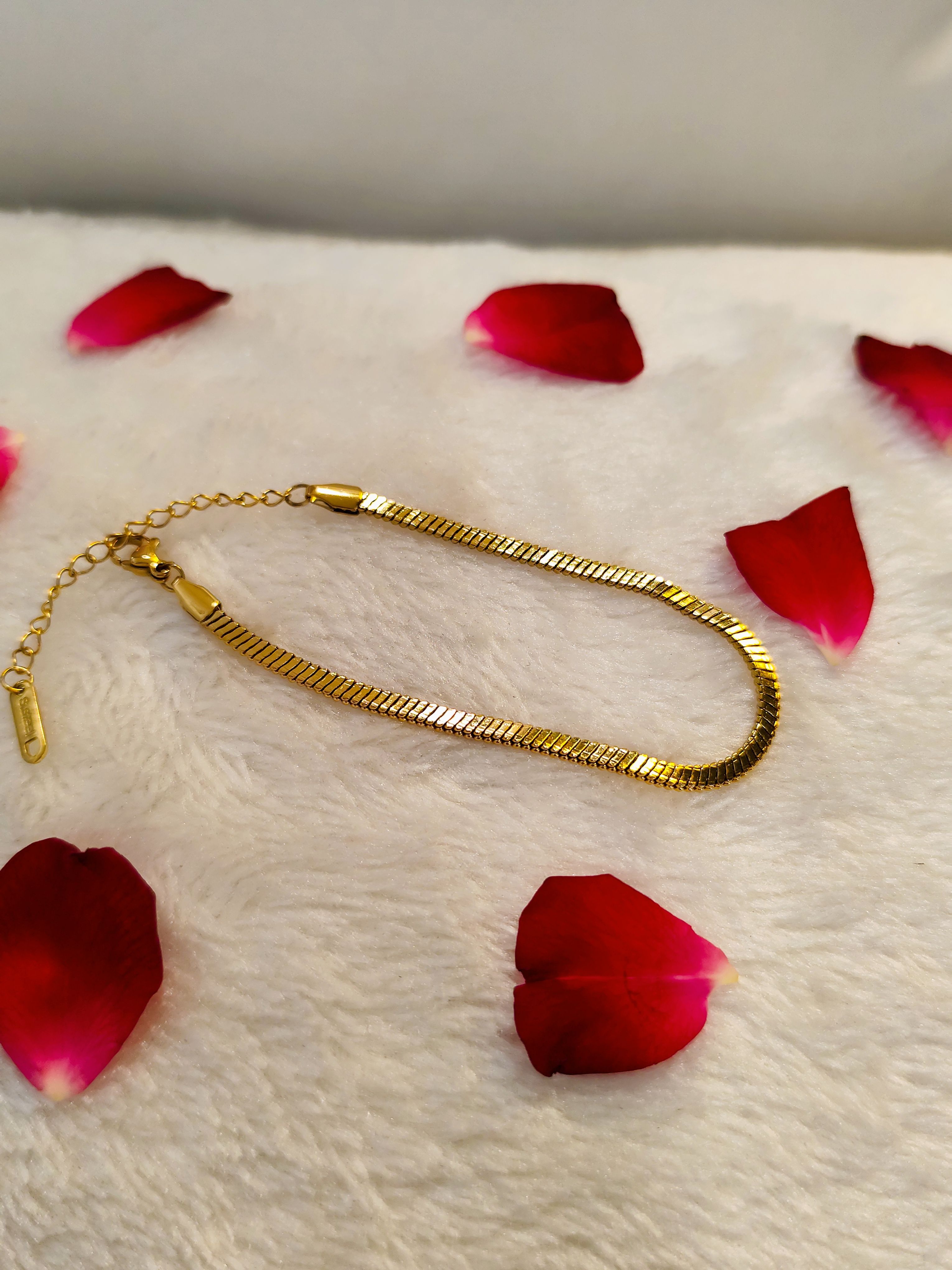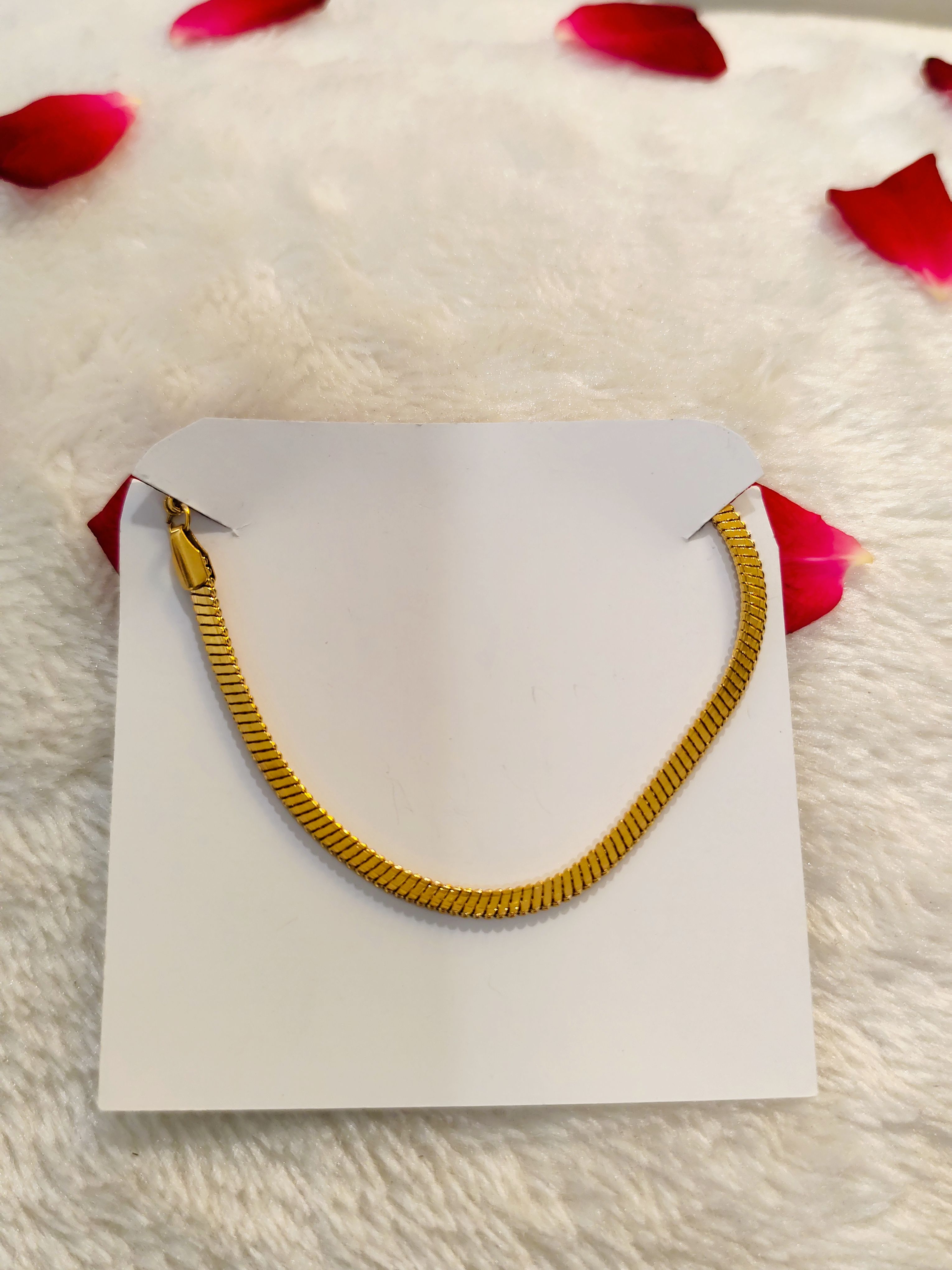 Simple, elegant, and endlessly versatile — the Classic Gold Flat Chain Bracelet is designed for effortless everyday styling. Featuring a sleek flat gold-tone chain with a smooth finish, this bracelet adds a polished touch to any outfit. Perfect to wear alone for a minimal look or stack with other bracelets for a trendy layered style.