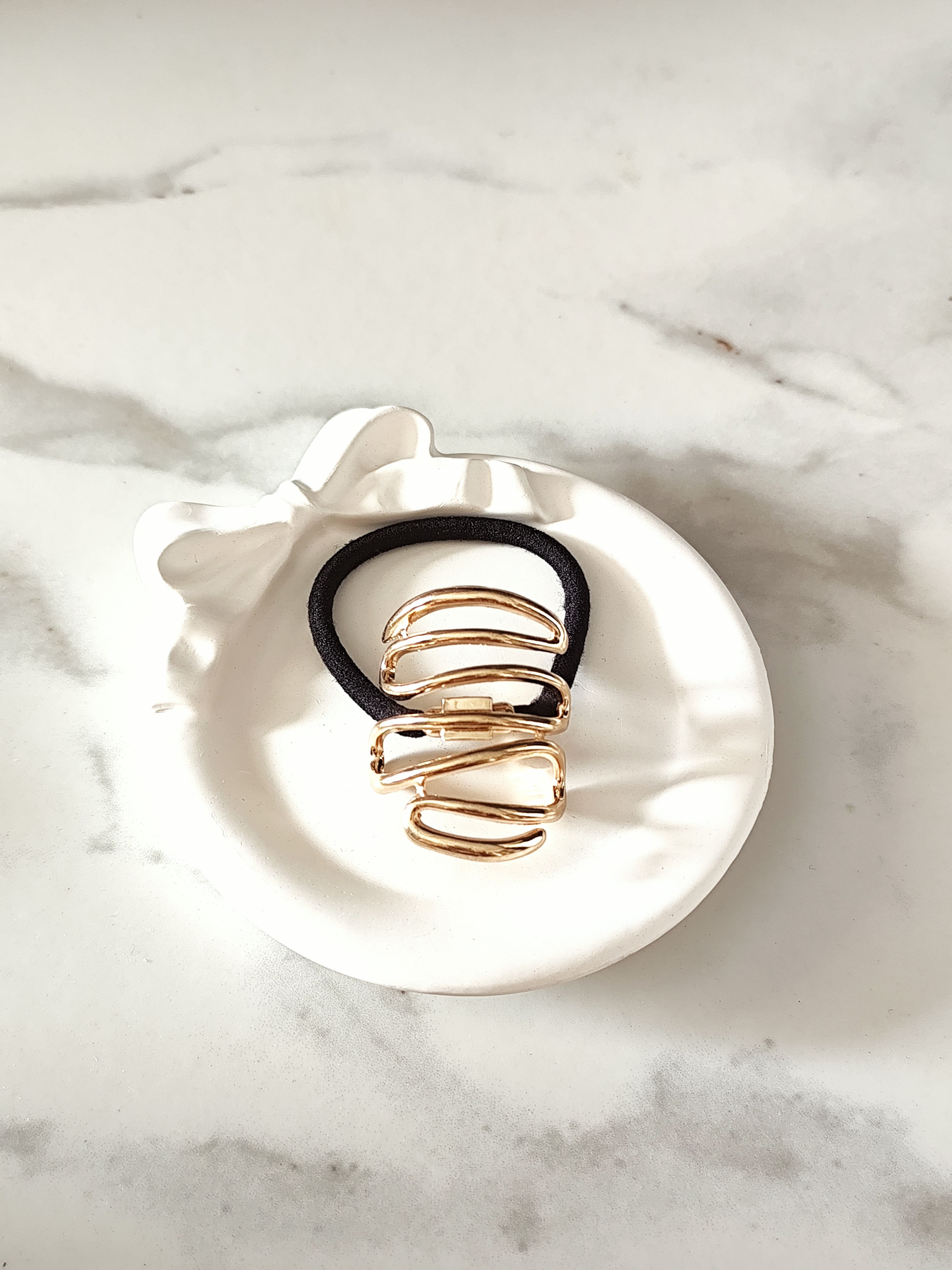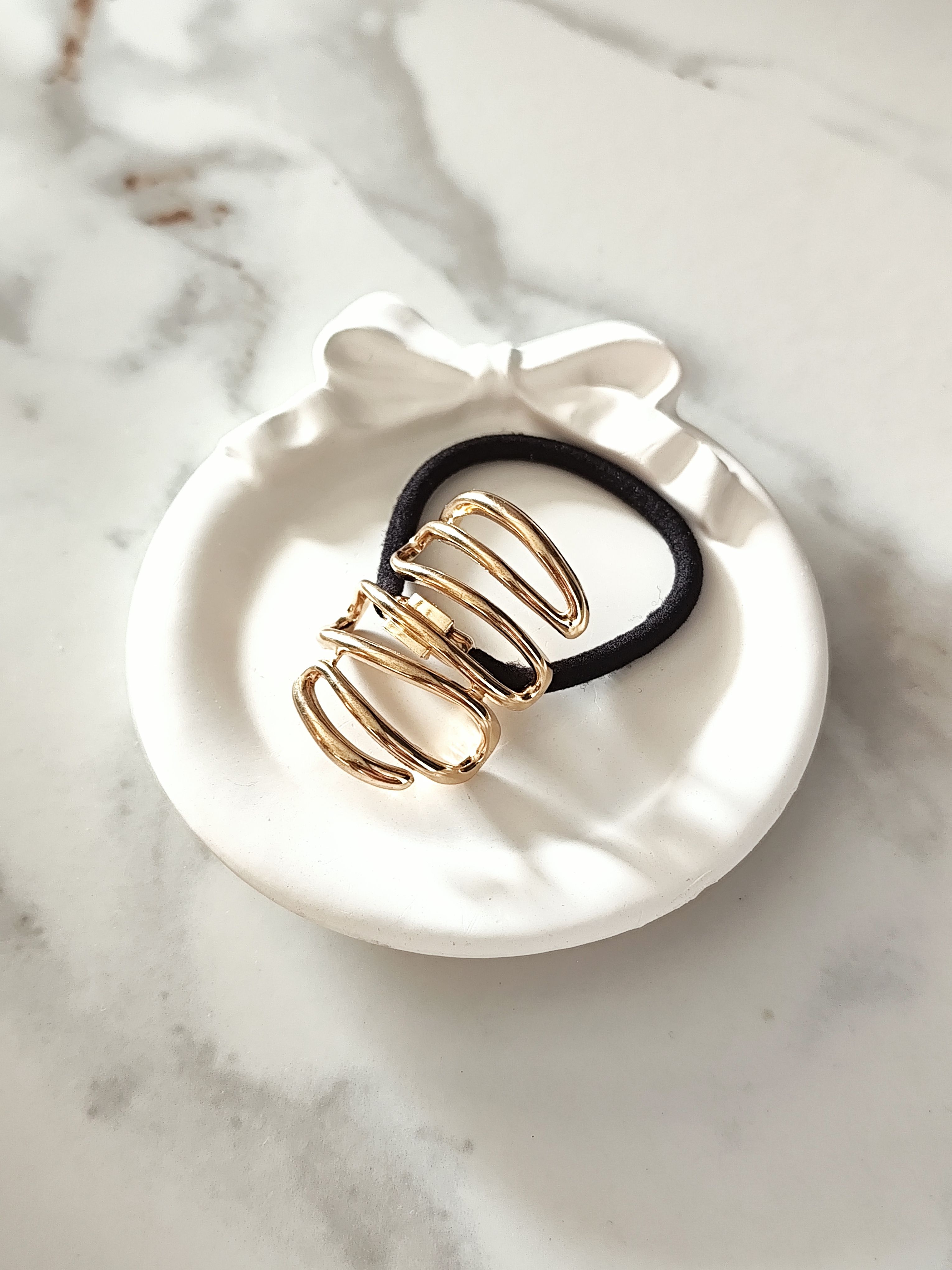 Featuring a unique coil-inspired gold design, this hair rubber band adds a trendy and artistic element to your hairstyle while remaining lightweight and comfortable.